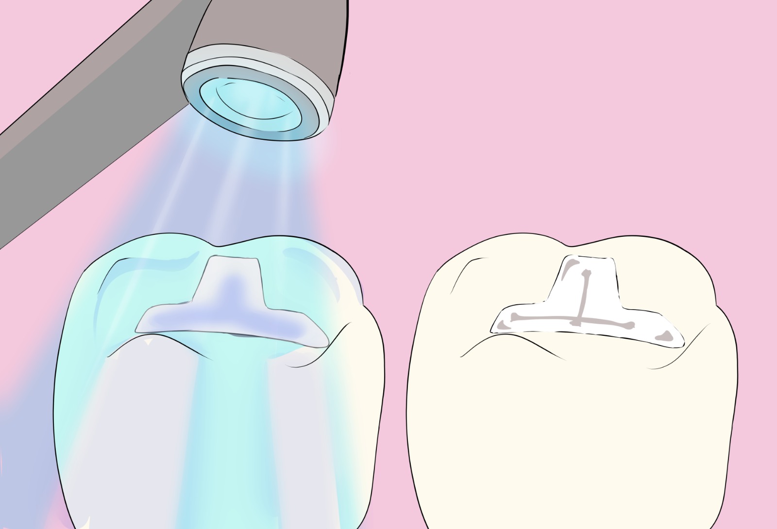 11. Se fotocura la resina aplicada, dependiendo de la calidad e intensidad de la luz les el tiempo puede variar. Algunas lámparas de fotocurado pueden endurecer la resina en 5 segundo y otras en 20 segundos.